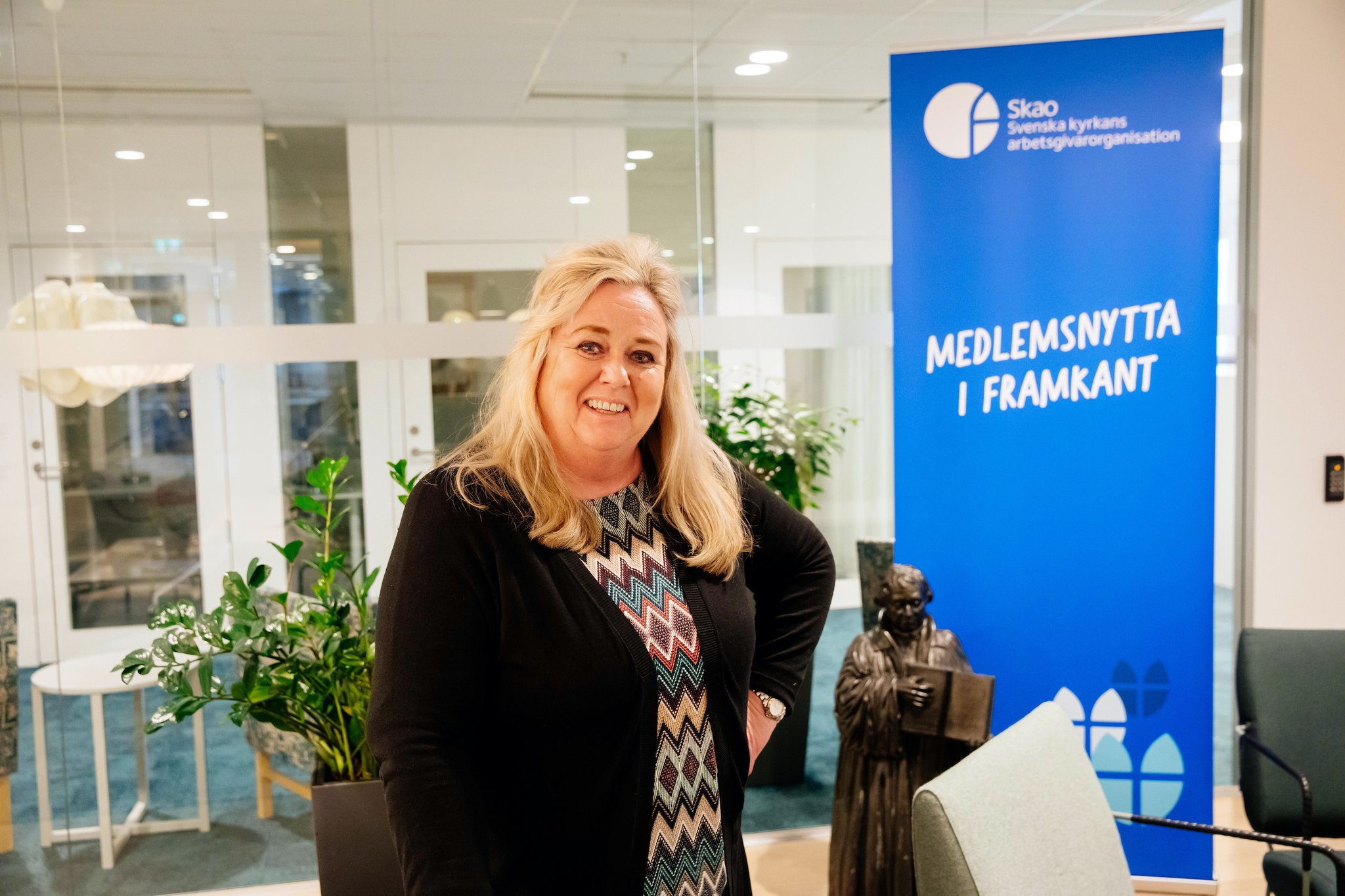 I september 2019 började hon som vd på Svenska kyrkans arbetsgivarorganisation, Skao. Nu ligger fokus på arbetsgivarrollen med allt vad den innebär, från kollektivavtal, arbetsrätt och arbetsmiljö till omställningsfrågor och kompetensutveckling inom ramen för Kyrkans trygghetsråd – och inte minst pensionsfrågor.